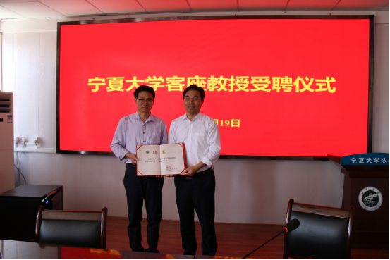 副校长李学斌为陈应龙教授颁发客座教授聘书,聘期为期3年。