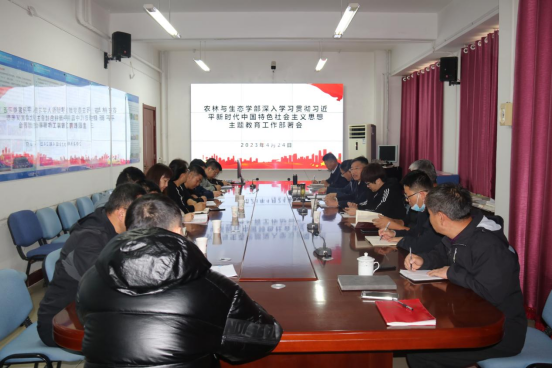 【杨茗媛/文/图】4月24日,农林与生态学部在德晖楼103会议室召开深入开展学习贯彻习近平新时代中国特色社会主义思想主题教育工作部署会,认真学习贯彻习近平总书记在中央主题教育工作会议上的重要讲话精神,进一步贯彻落实校党委关于深入开展学习贯彻习近平新时代中国特色社会主义思想主题教育动员部署会会议精神,农林与生态学部党委书记张宁主持会议。