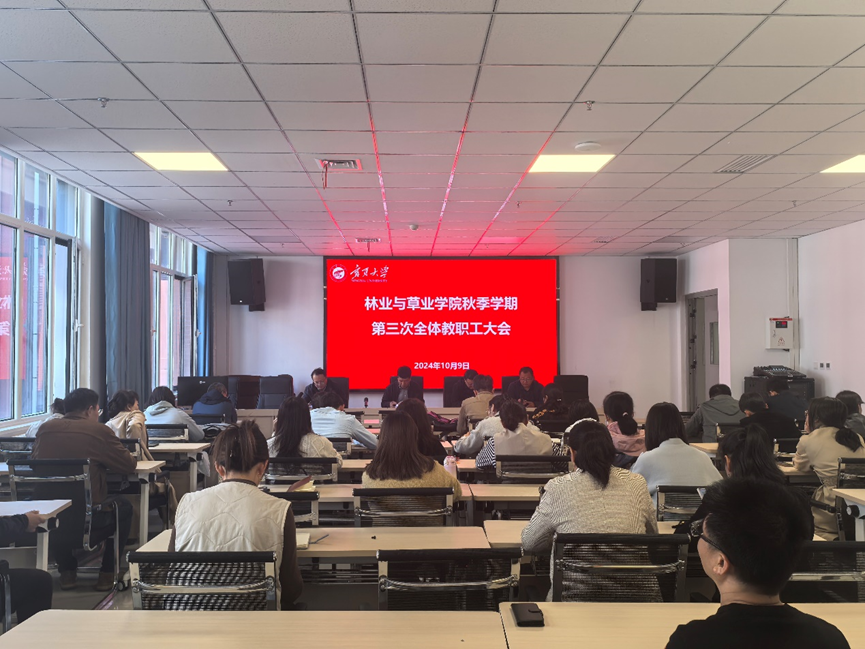 在新农科大楼204会议室召开了秋季学期第三次全体教职工大会。深入学习习近平总书记重要讲话以及自治区党委第十三届九次全会精神,总结本科教育教学预评估工作和国基金申报获批情况,并对学院下一步的工作进行安排部署。院长马红彬主持会议,学院全体教师参加了会议。
